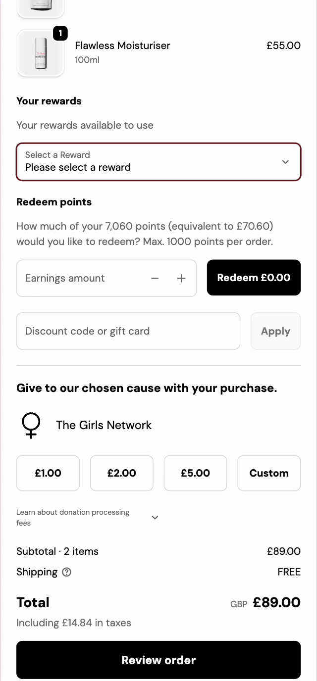 As a thank you for your loyalty, you're rewarded with points for each order. These points can be redeemed for money off your next order, making your skincare routine even more rewarding.